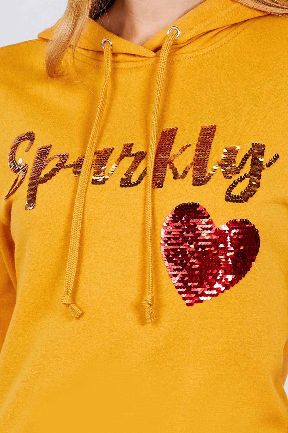 LONG SLEEVE HOODIE SEQUINS EMBROIDERED FRENCH TERRY PULLOVER TOP