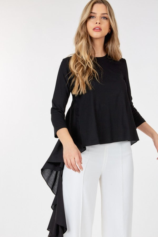 CONTRAST RUFFLE QUARTER SLEEVE HIGH LOW TOP