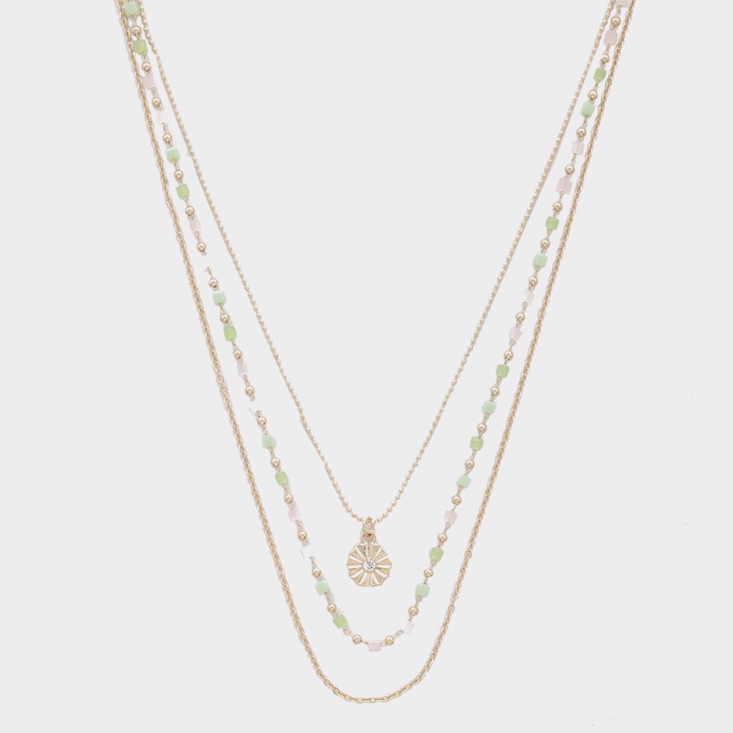 3 Layered Metal Glass Bead Chain Pendant Necklace