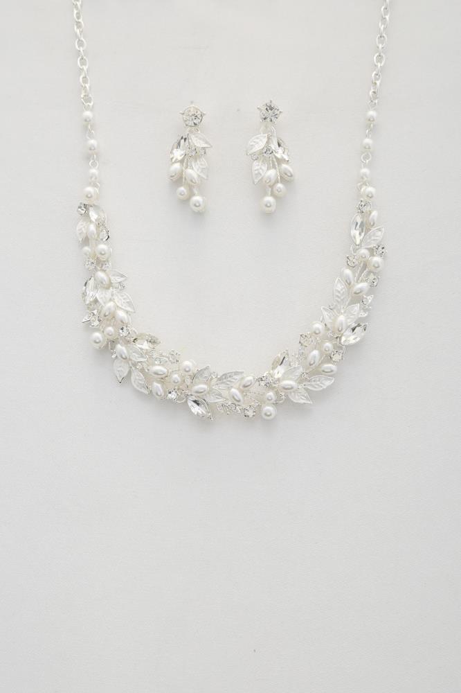 LEAF PATTERN PEARL CRYSTAL NECKLACE