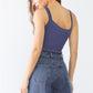 solid color, fitted, viscose blend, different straps, sleeveless, square neckline, thong double snap closure, semi-stretchy, unlined, non-sheer, casual, cute, lifestyle