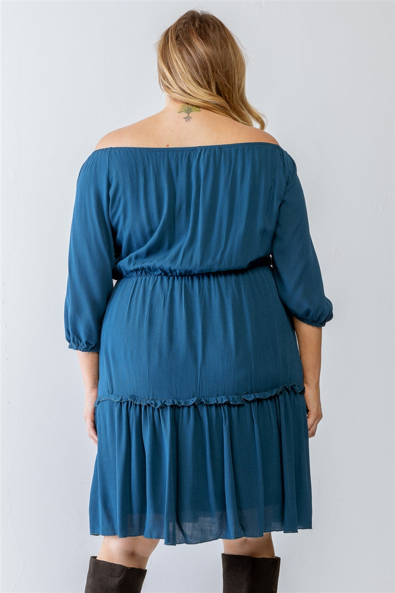 Plus Combo Printed Textured Ruffle Flare Hem Mini Dress